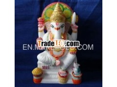Alabaster marble handmade god Ganesh Bappa sculpture nicely handpainted reglious